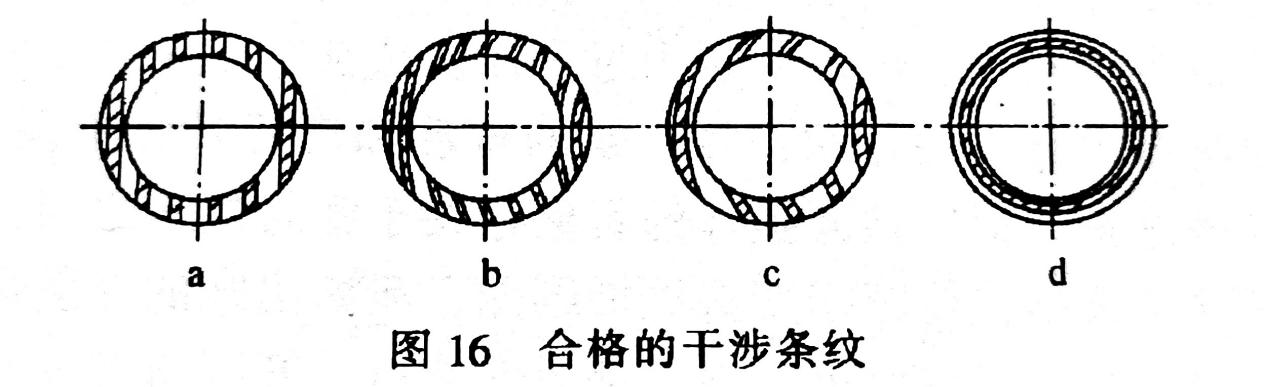 密封端面的平面度不同,條紋的種類(lèi)也不同。圖16表示了幾種平面度合格的圖像,至于不合格的圖像各式各樣未予繪出。
