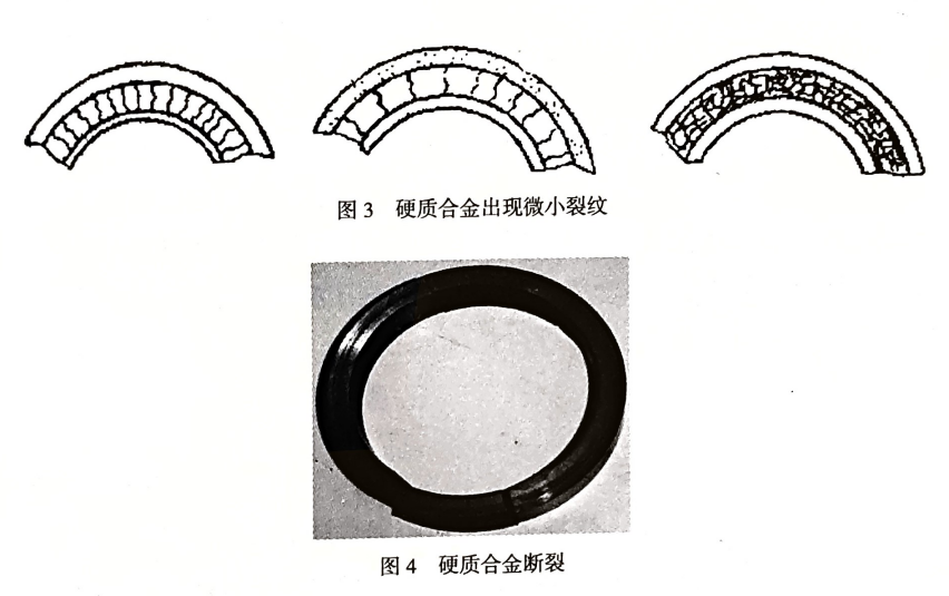 密封的動(dòng)環(huán)和靜環(huán)出現(xiàn)微小的裂紋(圖 3、圖4),導(dǎo)致密封泄漏。